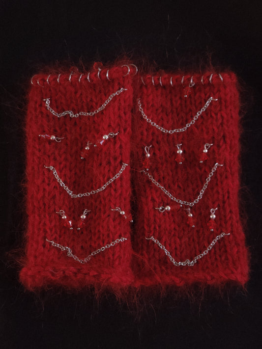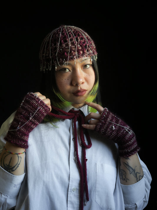 Chained Fluffy Wine Fishnet Hat