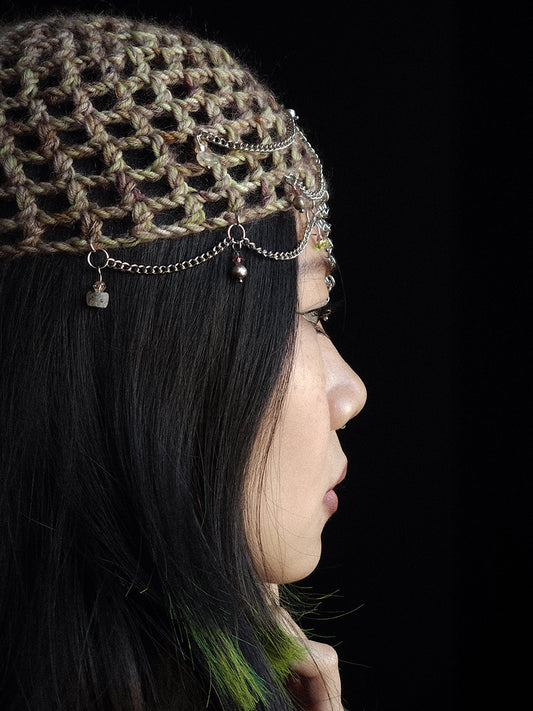 Chained Fluffy Wine Fishnet Hat